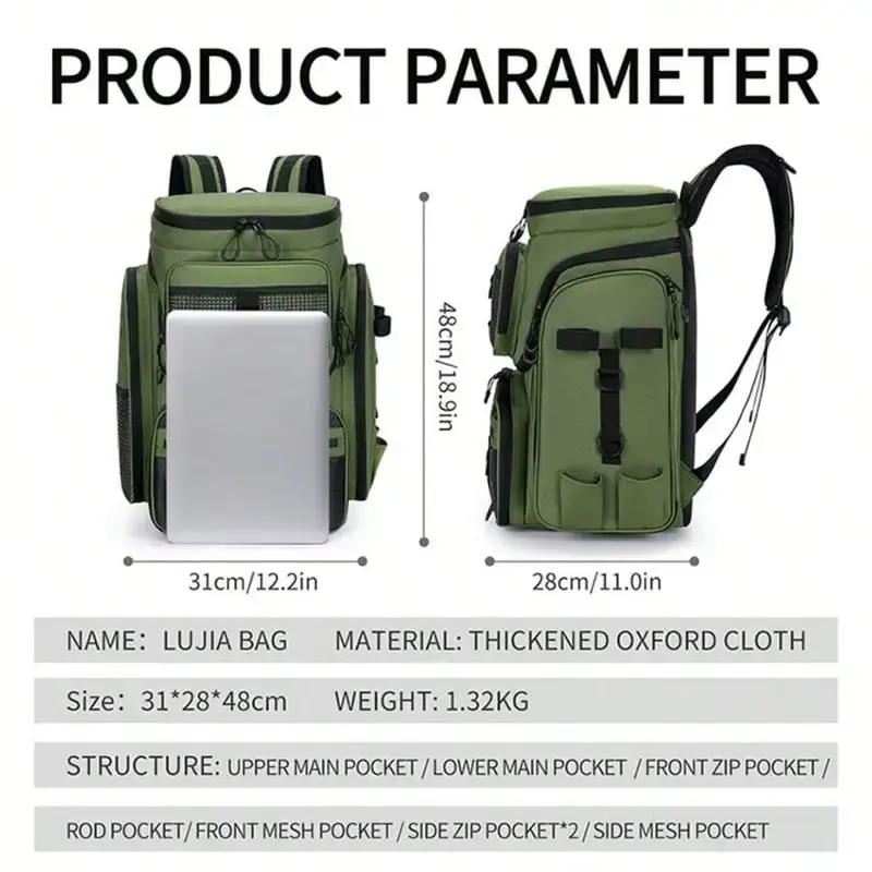 Fishing Backpack, Fishing Equipment Backpack with Pole Holder And Zipper Closure